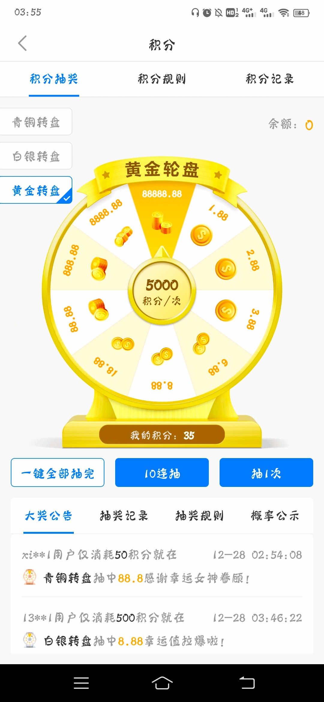 NO钱包,注册实名,每天登陆送积分抽奖。抽到找一个台子充了干。